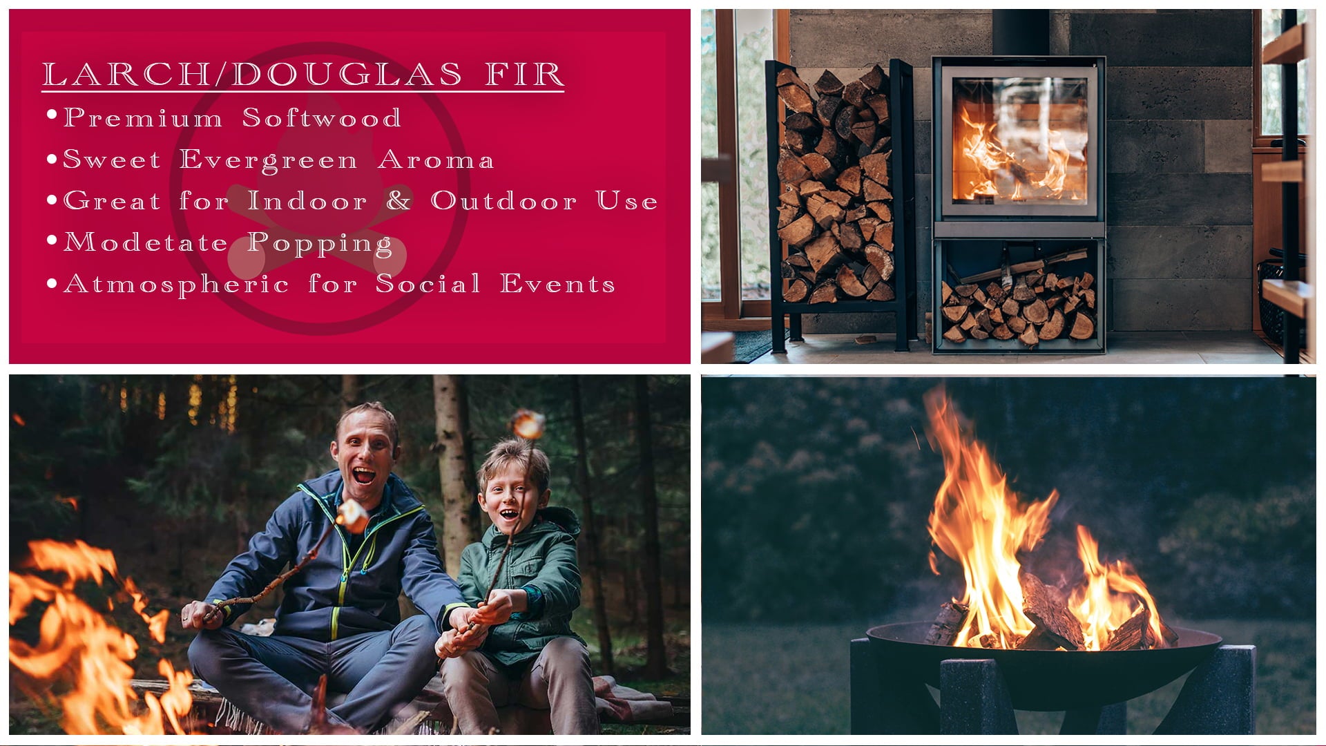 So why wait? Experience the premium burn quality of Larch/Douglas Fir firewood. Whether you are burning indoors or outdoors, Larch/Douglas Fir is a suitable option that you can trust for an amazing firewood experience.